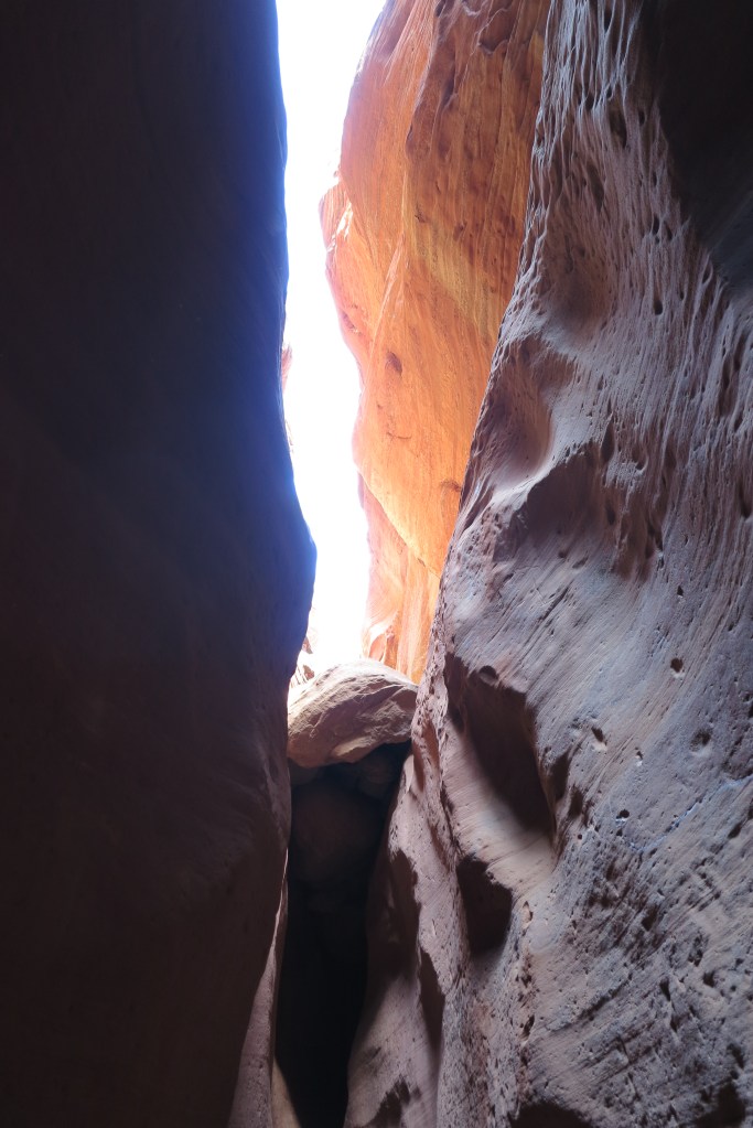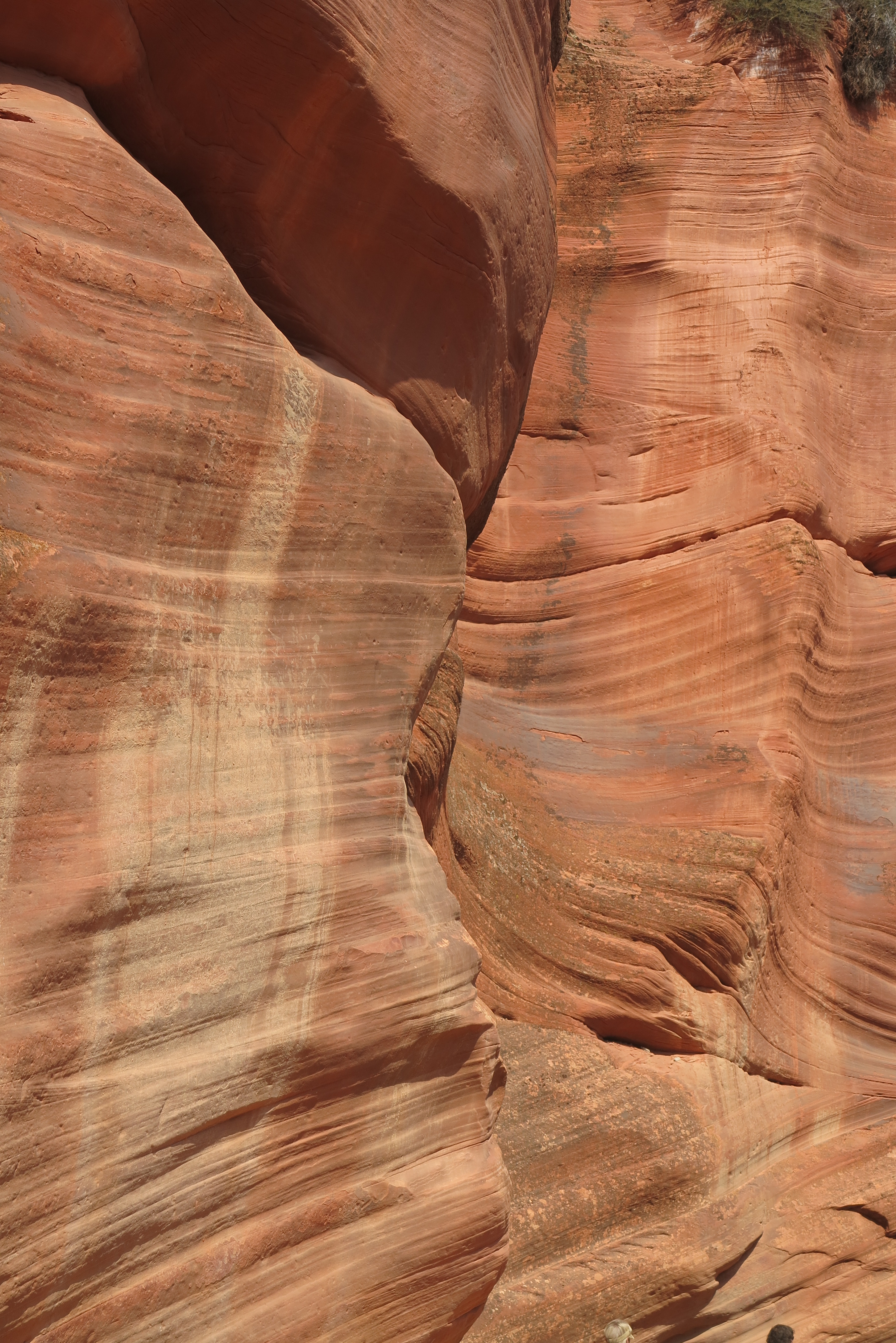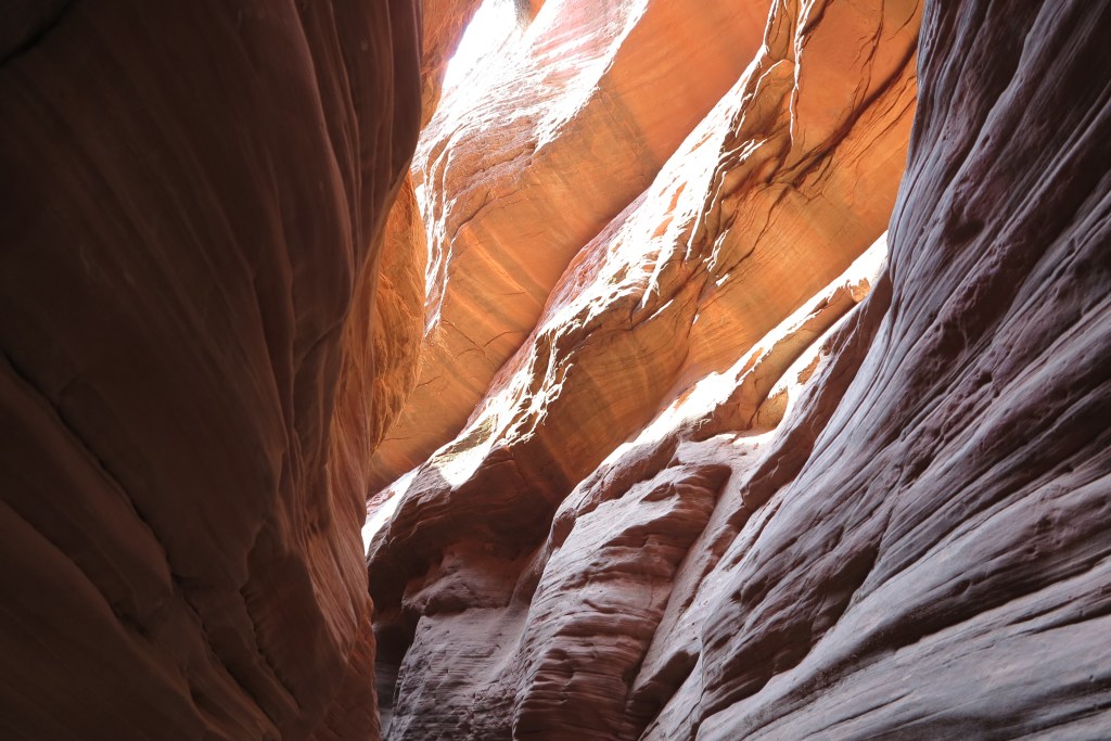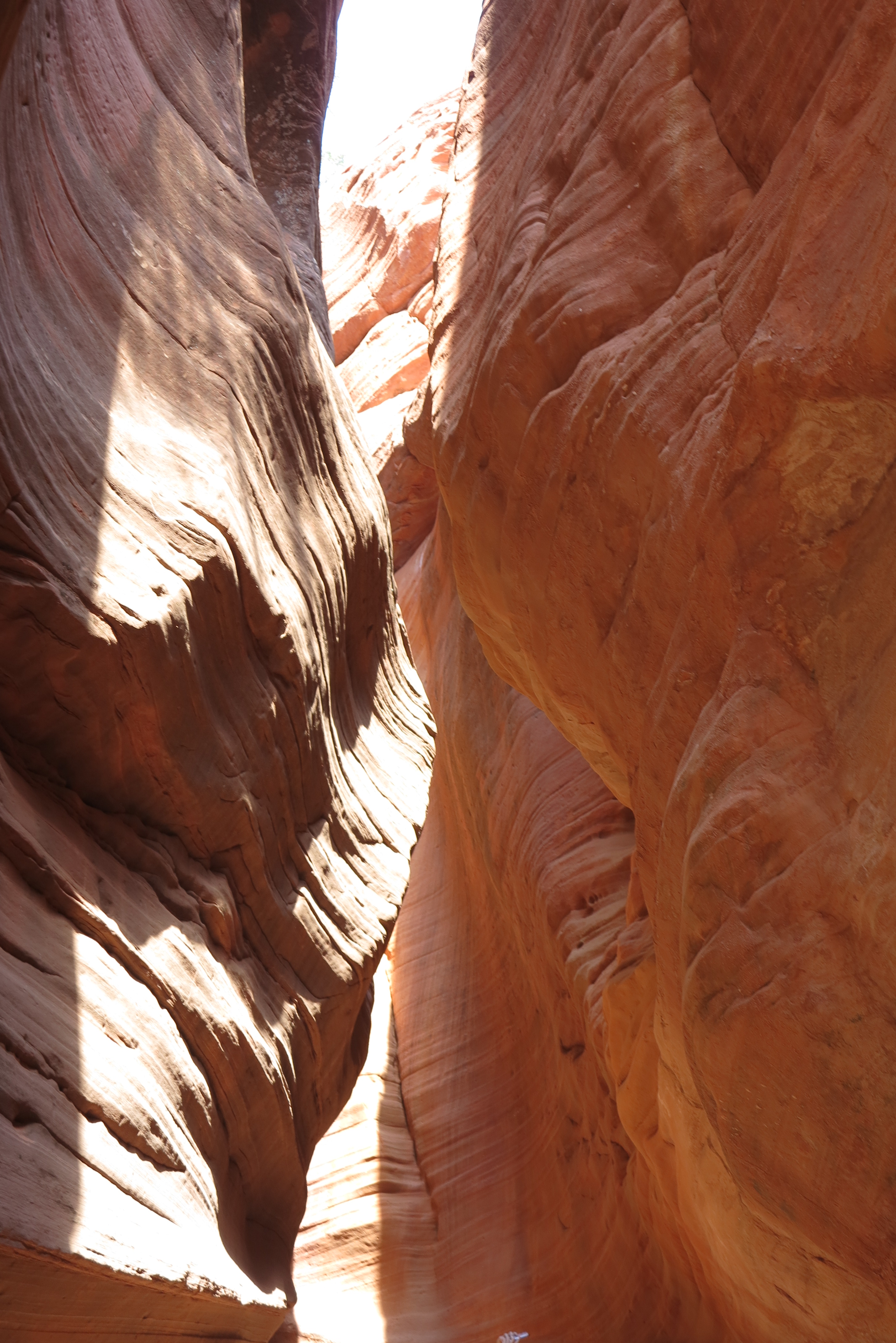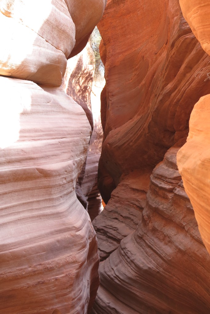 Peekaboo Canyon is a slot canyon about ten miles from Kanab, Utah. The canyon was maybe 40 feet deep and narrow in some places allowing for single file. Some areas widened to allow for two or three people to pass one another. The colors were beautiful. Here are a few images.