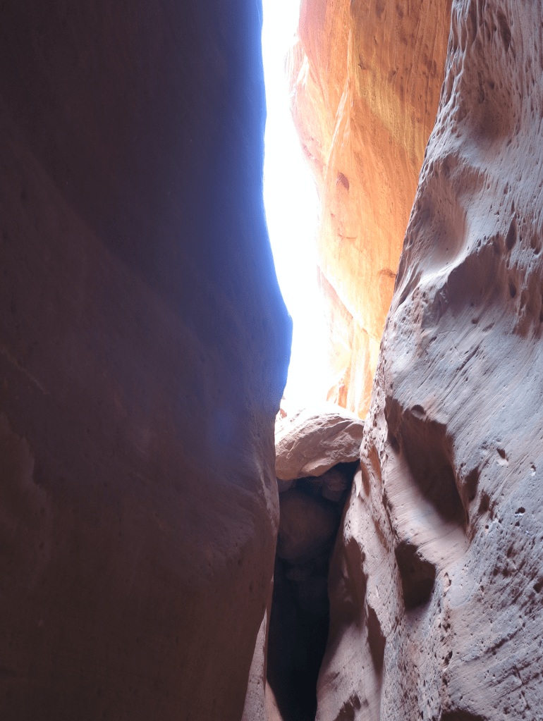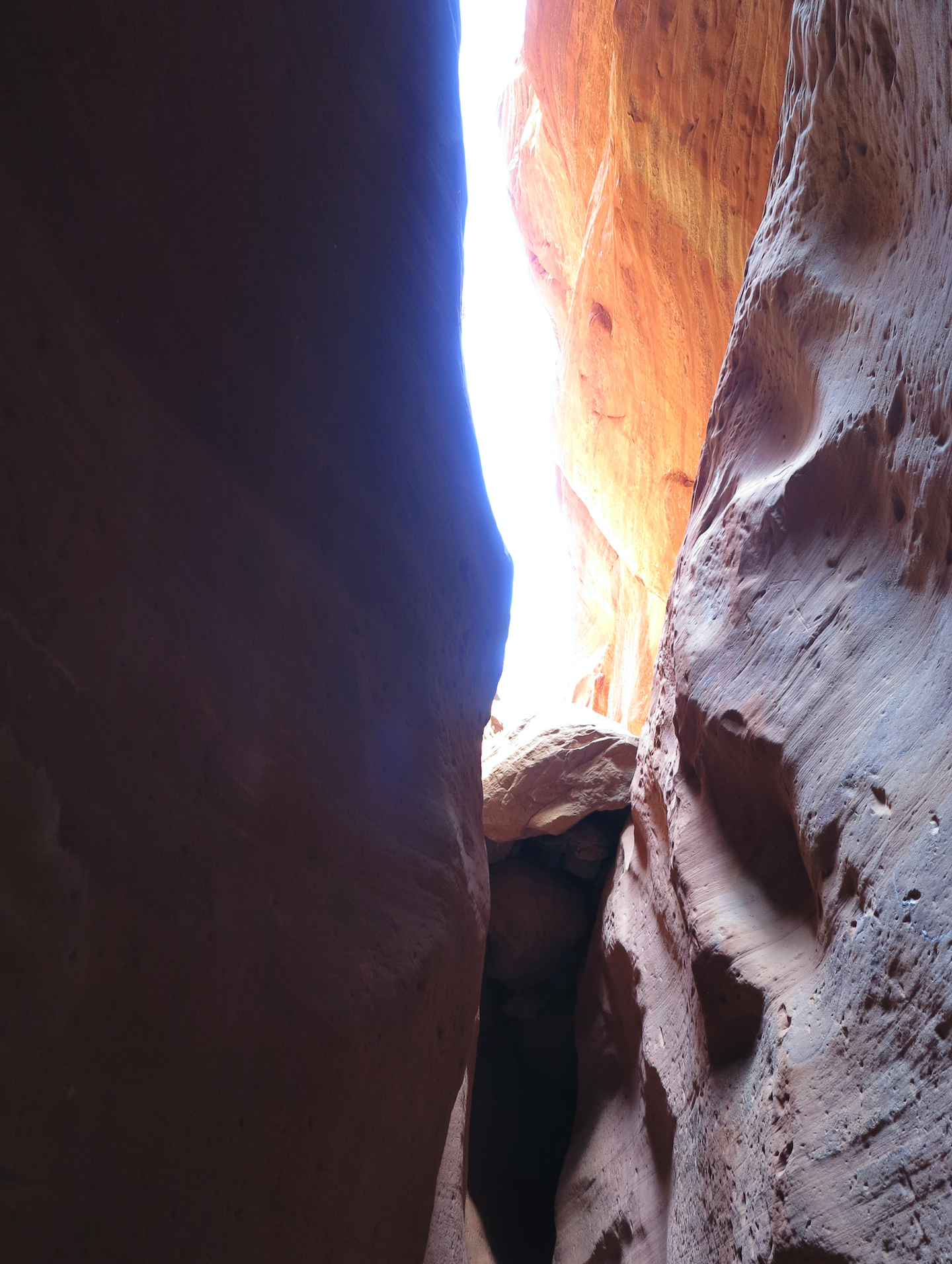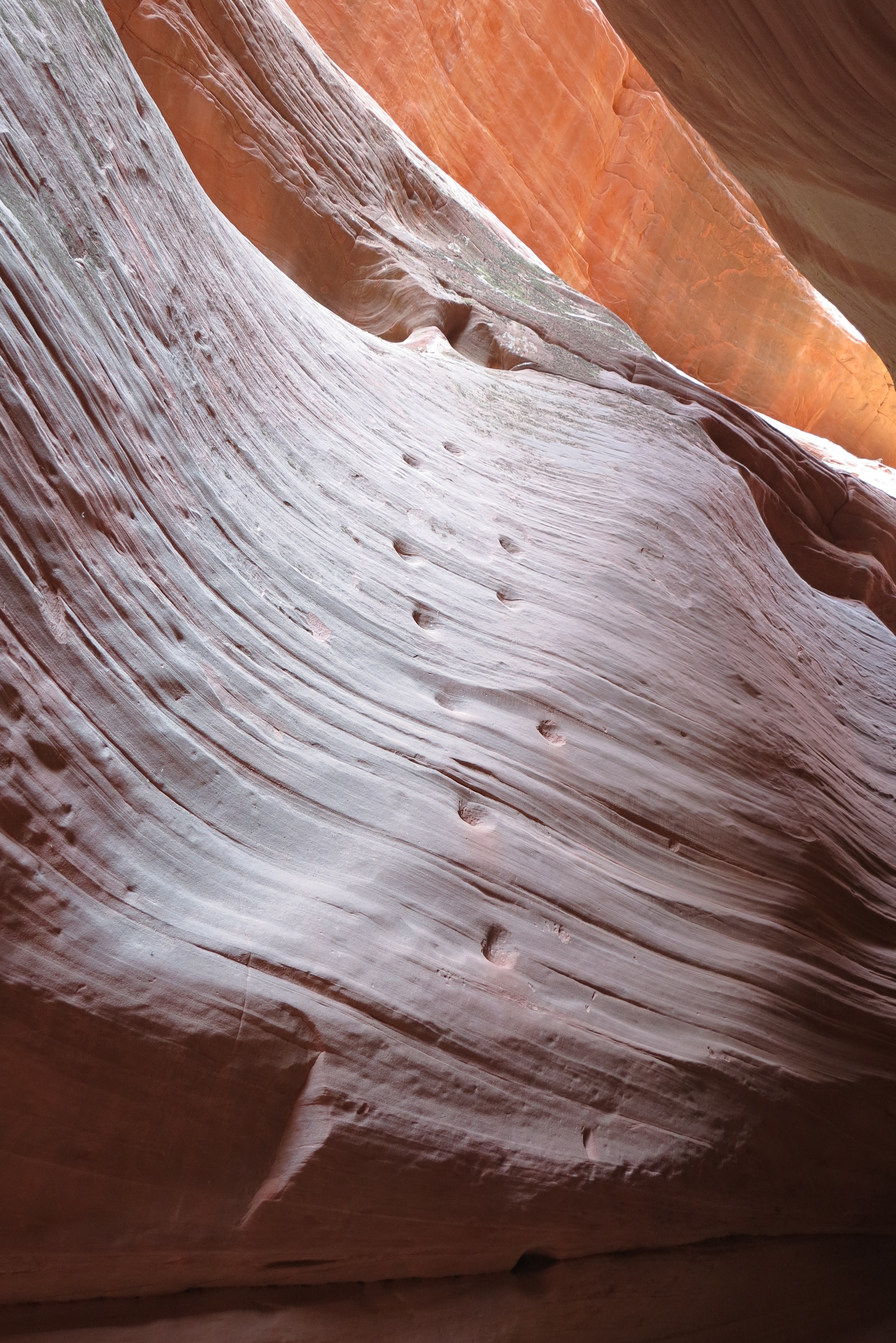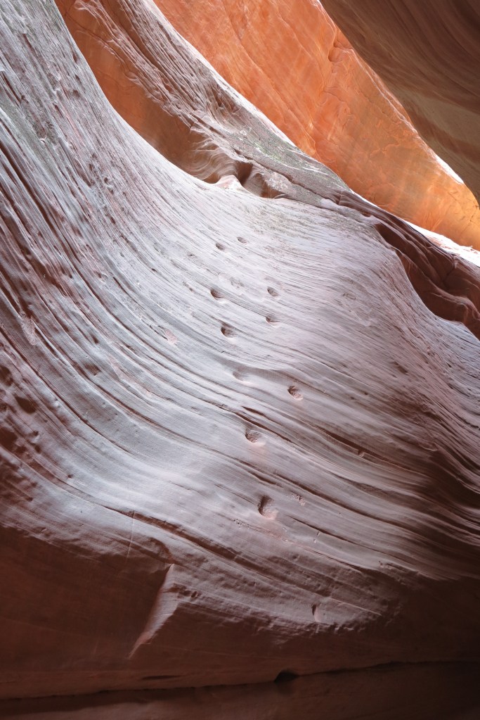 Peekaboo Canyon is a slot canyon about ten miles from Kanab, Utah. The canyon was maybe 40 feet deep and narrow in some places allowing for single file. Some areas widened to allow for two or three people to pass one another. The colors were beautiful. Here are a few images.
