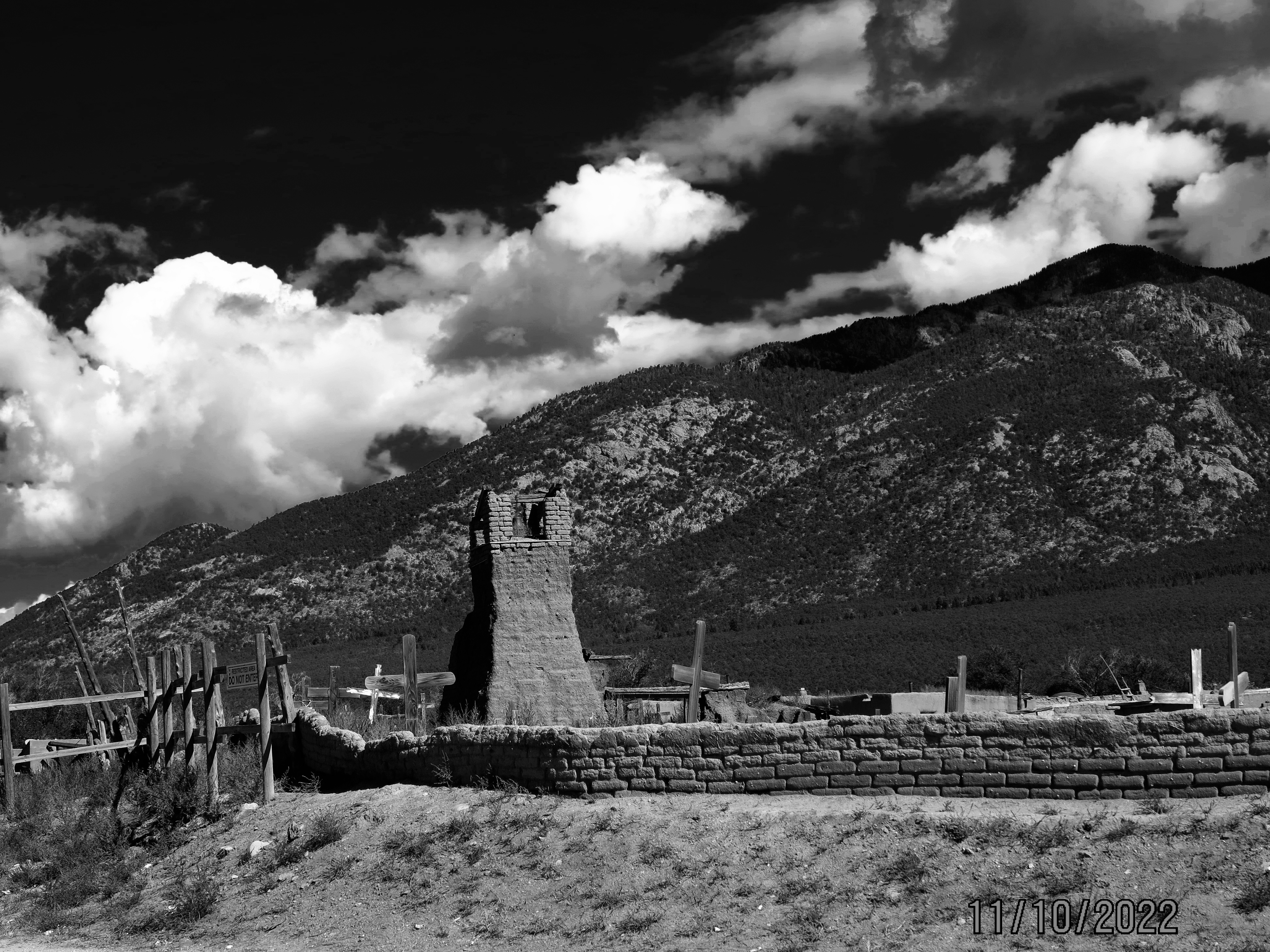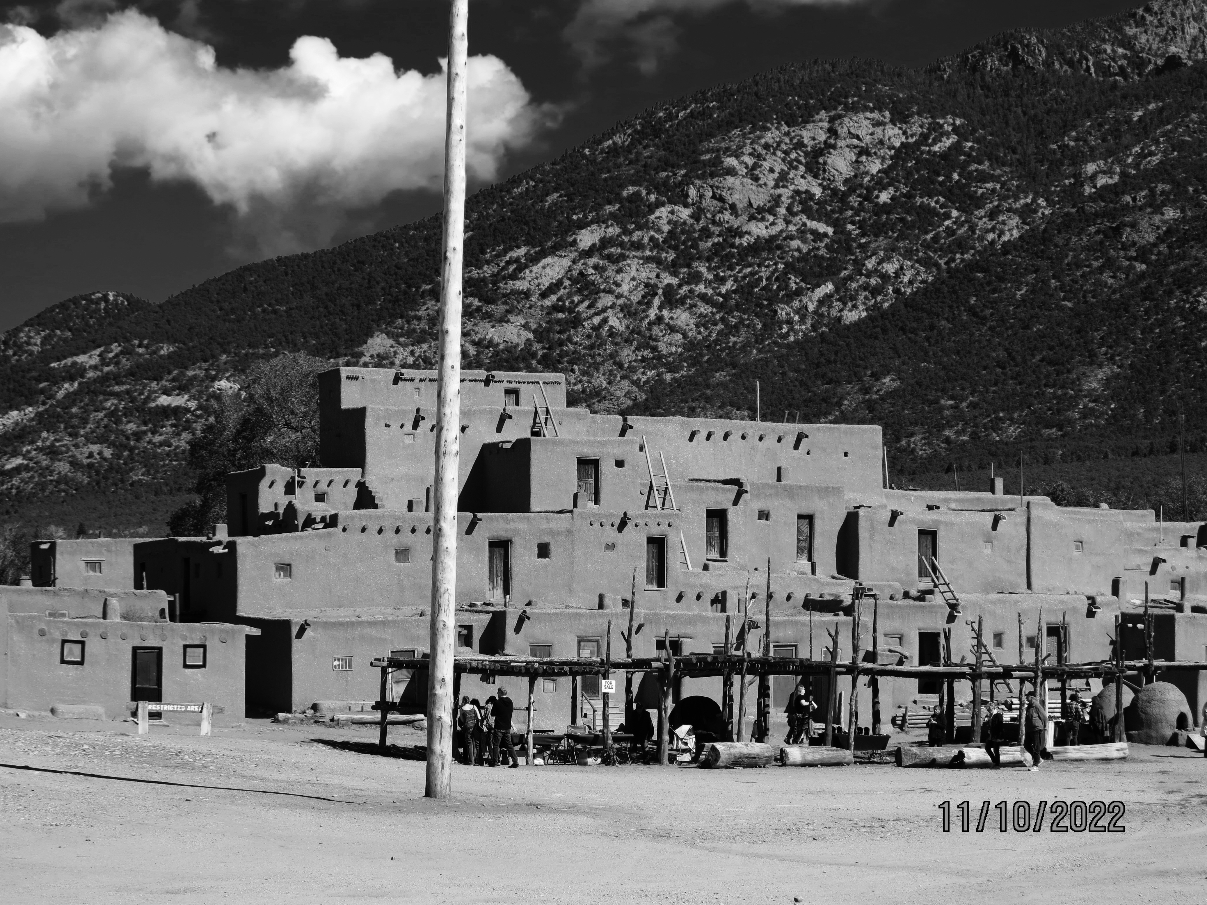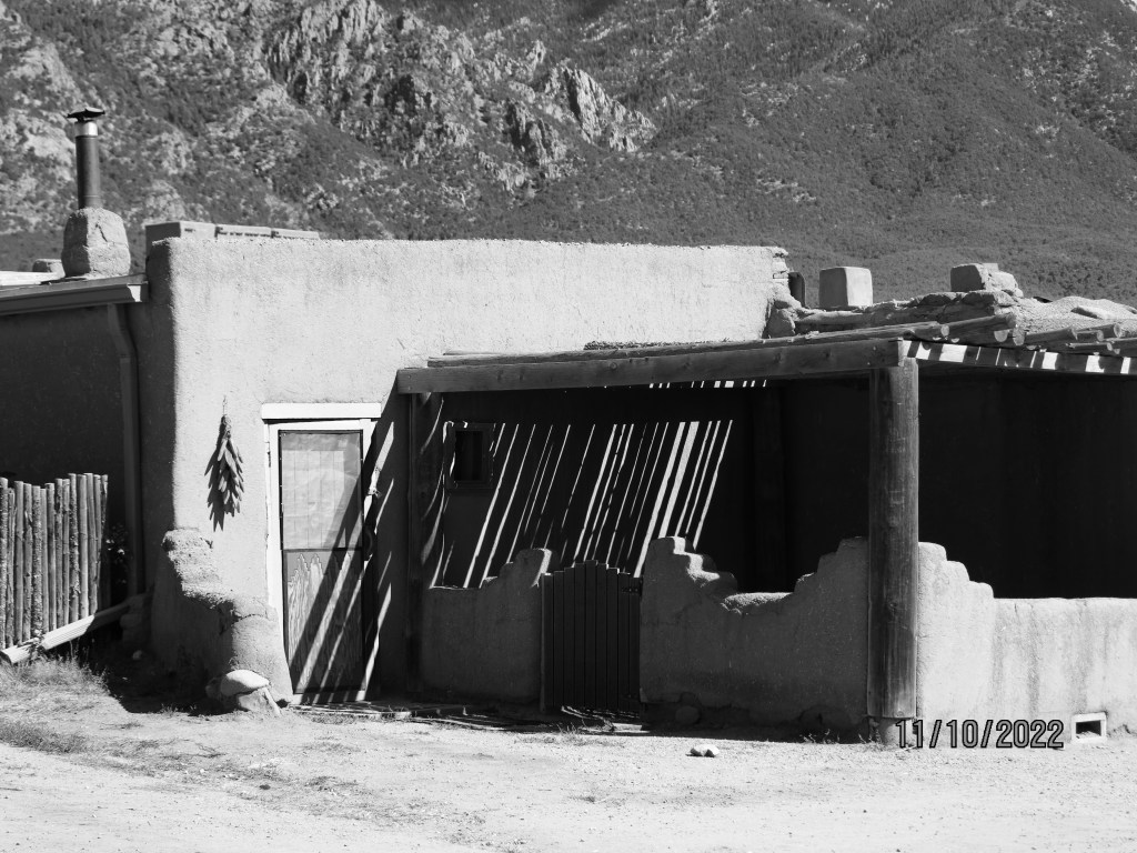 These are some images I took at the Taos Pueblo back on October 10th. The Peublo has been consistently occupied for over 1000 years and is still as it was the with dirt floors, without electricity, running water or plumbing. I’m posting the images in black and white as I feel it goes along with the history. It was a beautiful place. I talked with some of the arisans and saw their excellent craftsmanship. Beautiful friendly people. Enjoy.